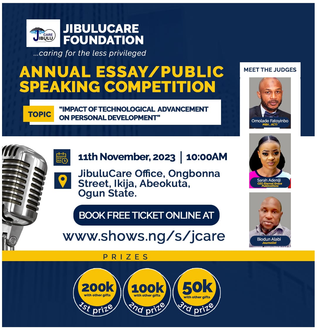 2023 JIBULUCARE FOUNDATION ANNUAL ESSAY/PUBLIC SPEAKING COMPETITION