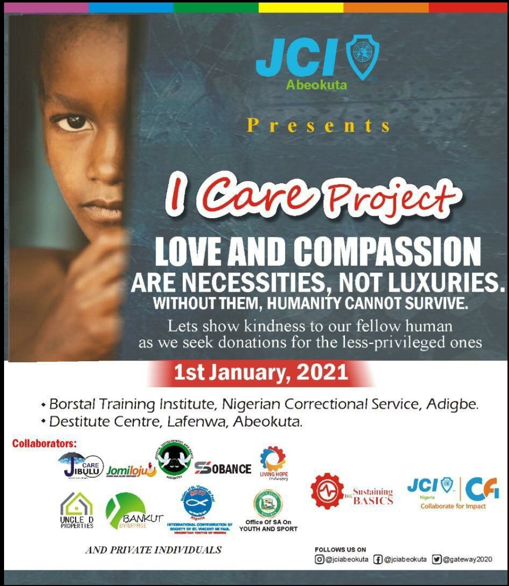 JibuluCare Foundation will be partnering with Junior Chamber International (JCI Abeokuta) to visit the less privileged with gifts, kindly join us to celebrate with the needy.